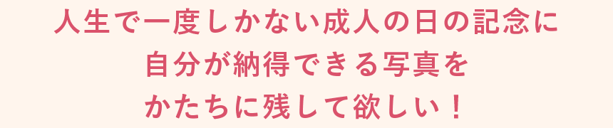 あなたと家族が歩んできた20年を詰め込んだ、思い出いっぱいのアルバムをつくり、家族の絆をより深めてはいかがでしょうか。街の写真館として長年培ってきた技術と信頼で、あなたの成人式の思い出づくりをお手伝いいたします。、