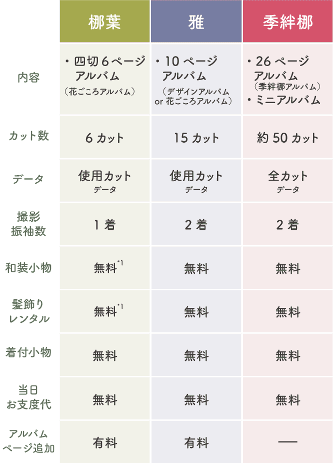 ※式典当日の着付・ヘアセットは218,000円以上(梛葉・雅・季絆梛)のプランをご成約の方に限ります。